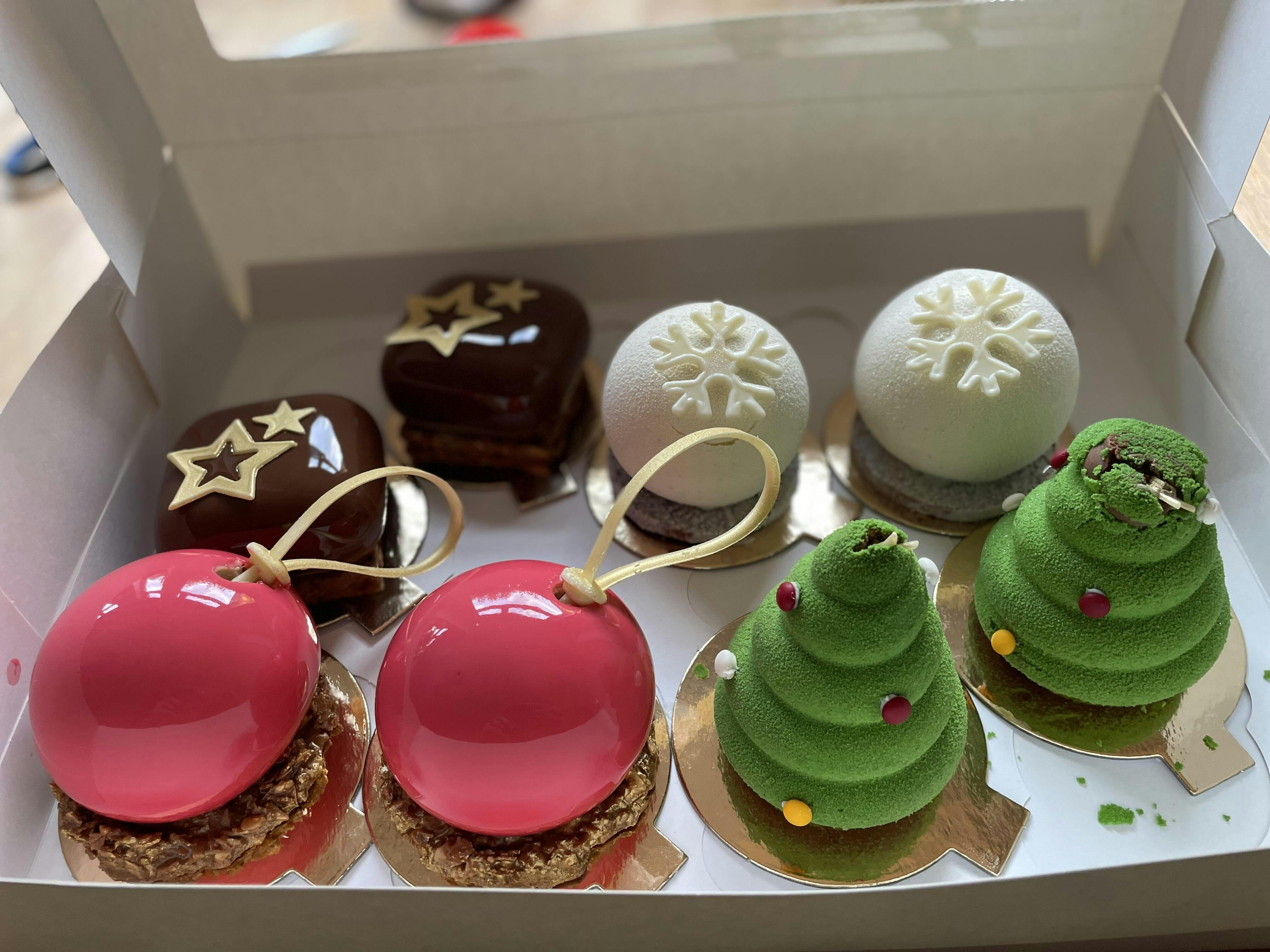 Available in boxes of 6 or 12, these cakes are designed to impress both visually and on the palate. Whether you're hosting, gifting, or indulging, this selection captures the magic of Christmas in every bite.