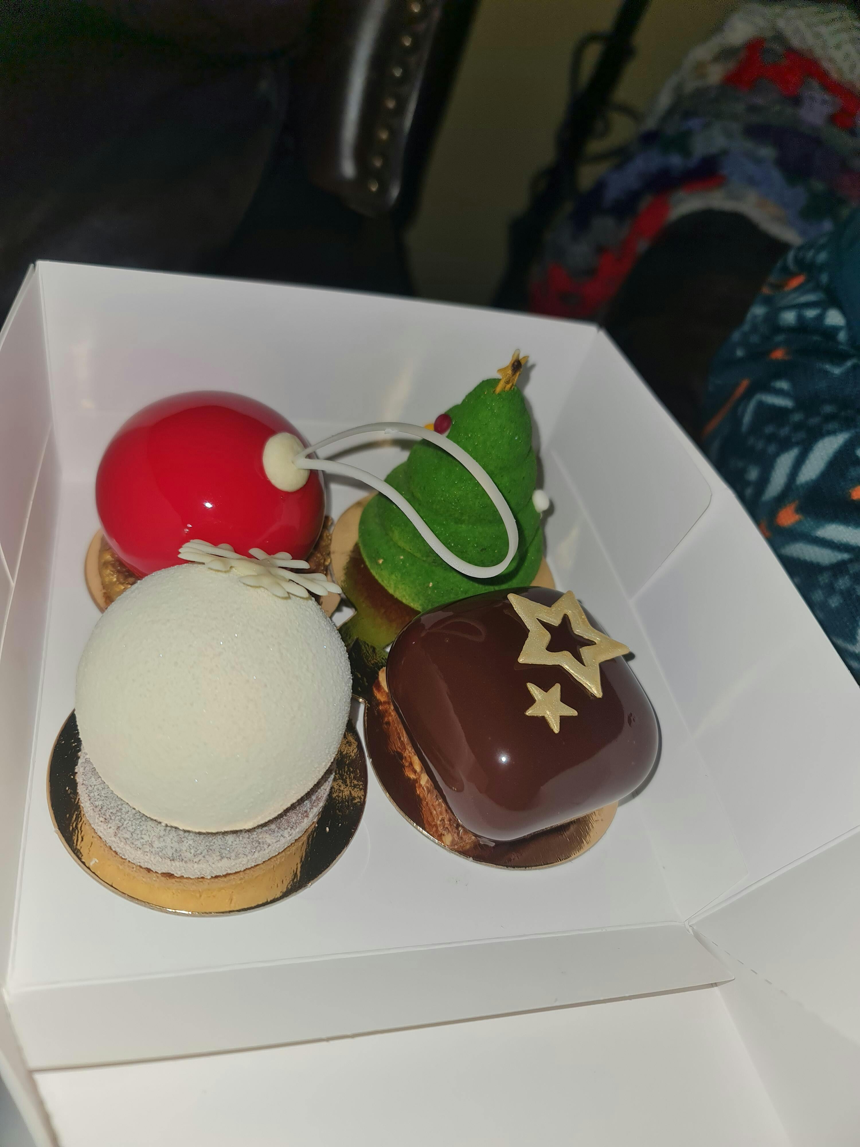 I bought a Christmas cake selection box from Cris for my boyfriends birthday. Cris was lovely to talk to and is clearly very talented. The presentation was beautiful and my boyfriend loved these as a gift. The flavors were very unique and tasty and definitely not something you can get just anywhere.